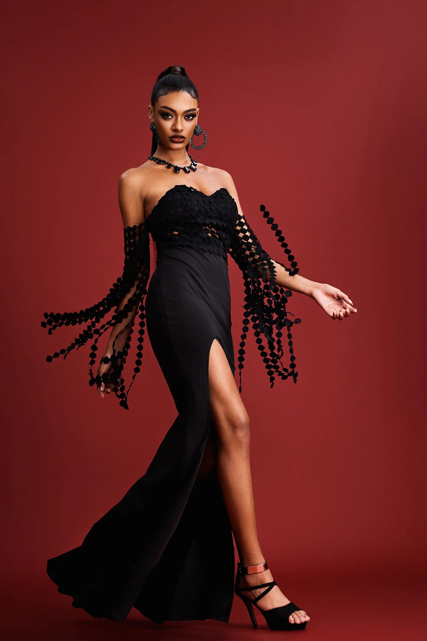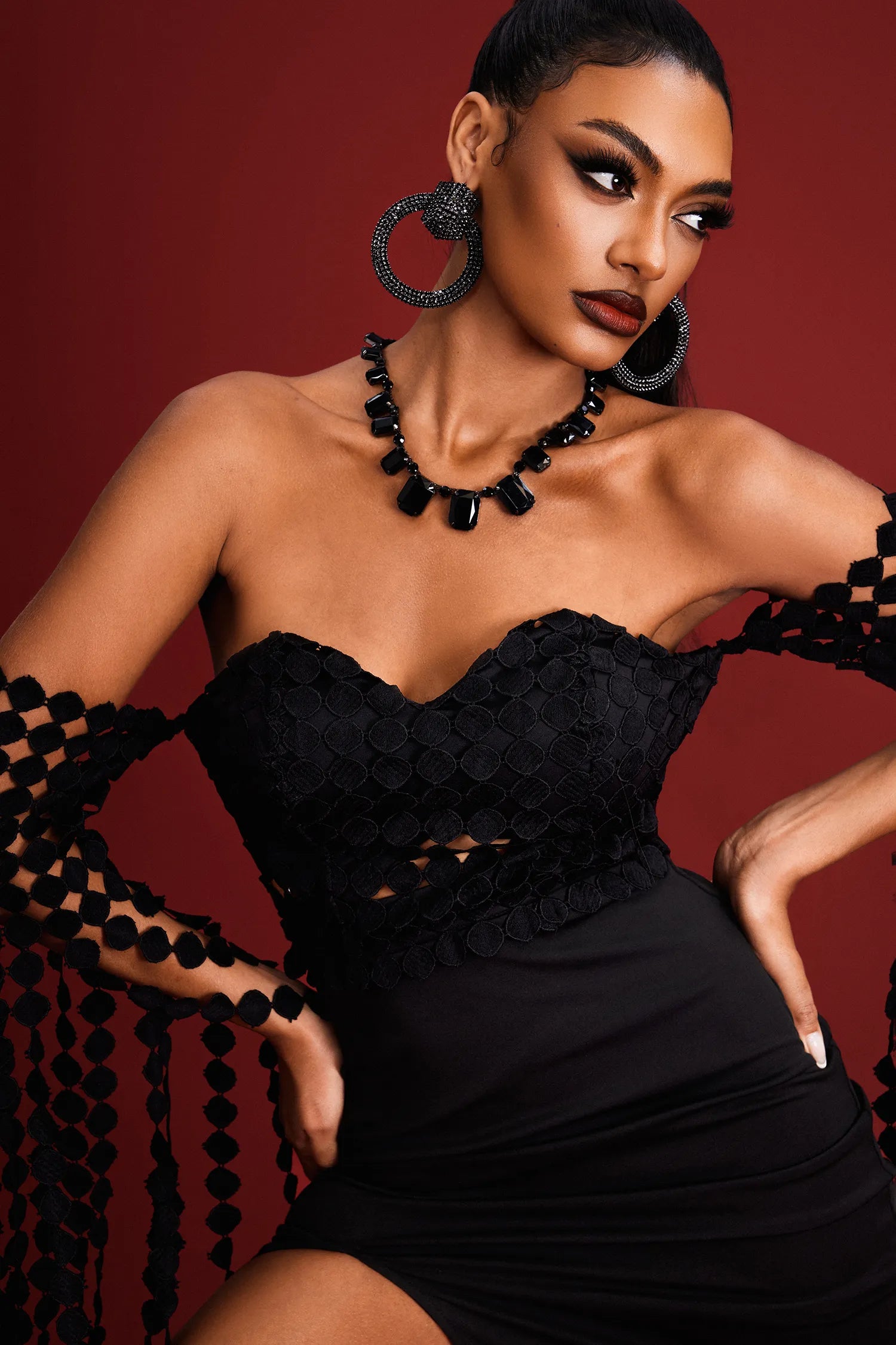 • Modellmaße: Größe – 65,7”/167 cm, Brustumfang – 32,2”/82 cm, Hüftumfang – 33,8”/86 cm, Taillenumfang – 25,5”/65 cm