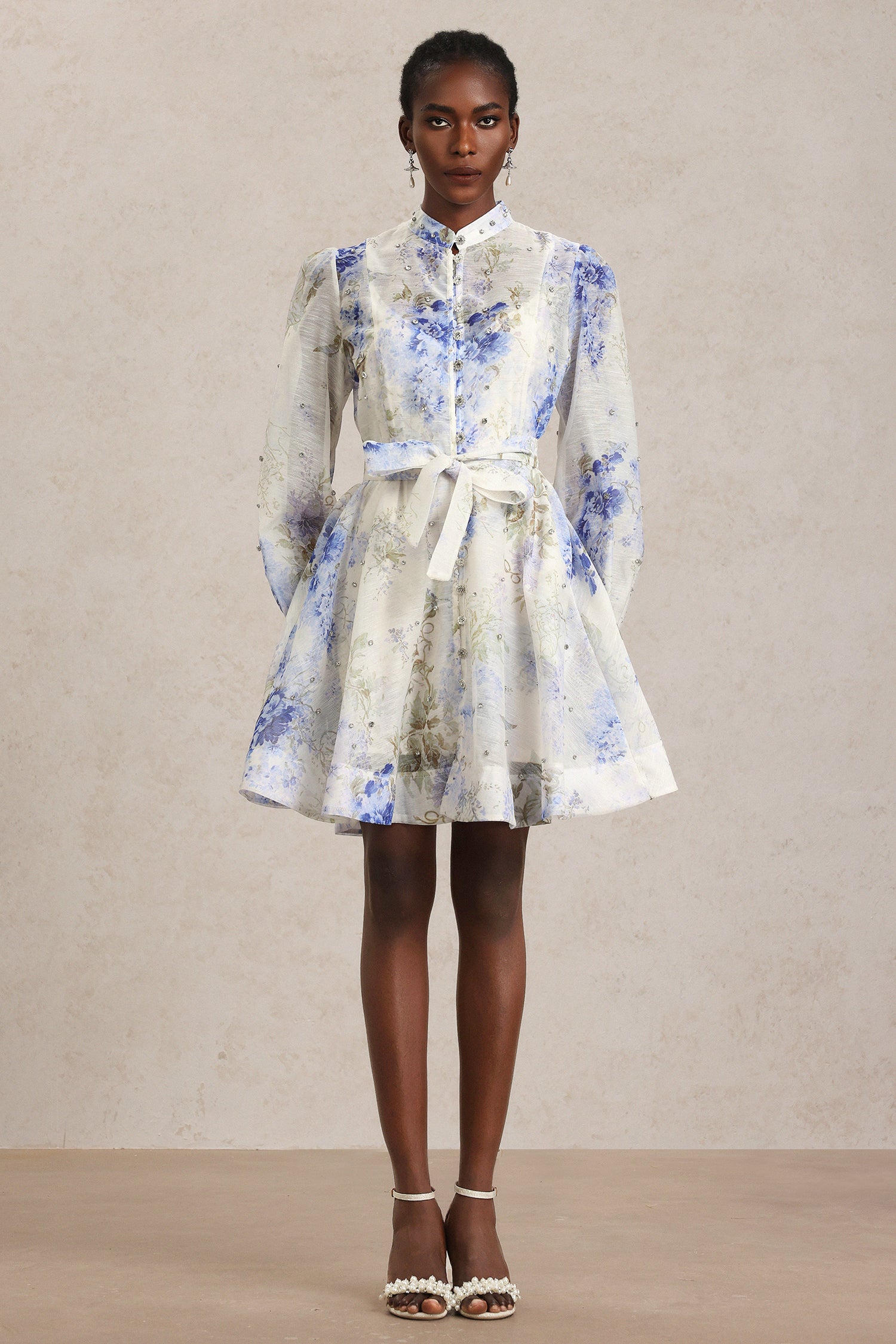 Demily Langärmliges Minikleid mit Blumenmuster und Rautenmuster