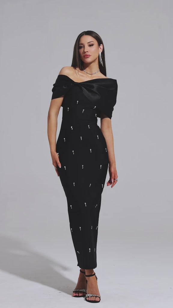 Palez Abwesenheits One-Shoulder-Bandage-Maxikleid mit Rautenschleife
