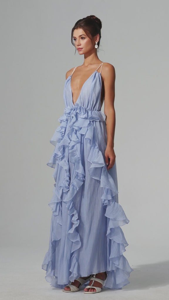 Quincy – Ärmelloses, rückenfreies Maxikleid mit Falten